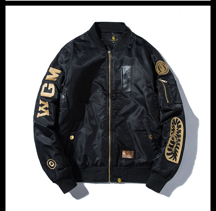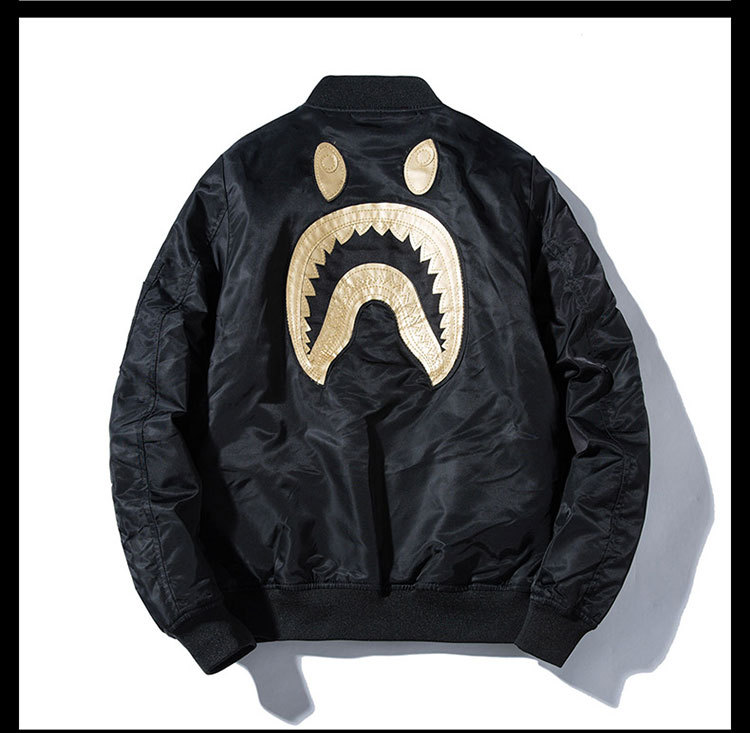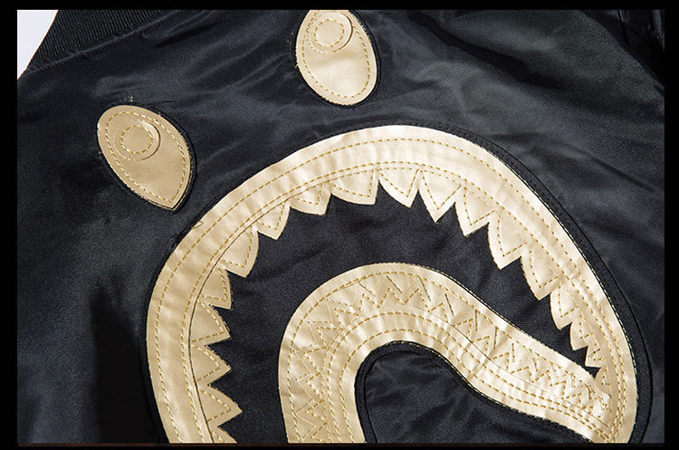 Embroidered Jacket Men's Autumn And Winter Shark Loose American Retro Couple Baseball Uniform Women's Thickened Pilot Jacket Fashion Brand